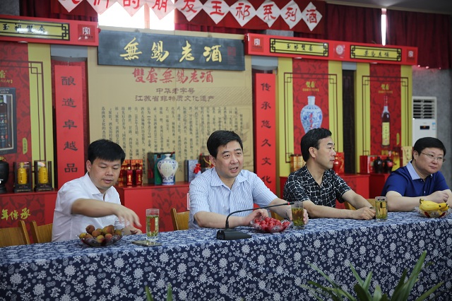 6月24日上午,無錫市市委副書記、市長汪泉,市政府秘書長許立新、惠山區(qū)區(qū)長李秋峰以及江大生工學院許正宏院長等領(lǐng)導(dǎo)調(diào)研玉祁酒業(yè),汪市長強調(diào),玉祁酒業(yè)作為本地的中華老字號企業(yè),要依靠獨有的地域優(yōu)勢,做大做強。江南大學生物工程學院的發(fā)酵專業(yè)作為全國知名專業(yè),一定要發(fā)揮其技術(shù)優(yōu)勢,要與玉祁酒業(yè)深度合作,同時各級部門要給予支持,盡快打造出無錫乃至江南一款高品白酒。